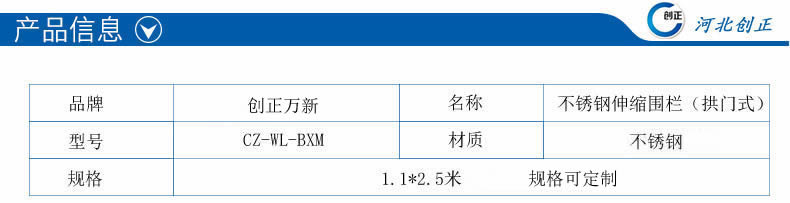 產品名稱:不銹鋼拱門式伸縮圍欄