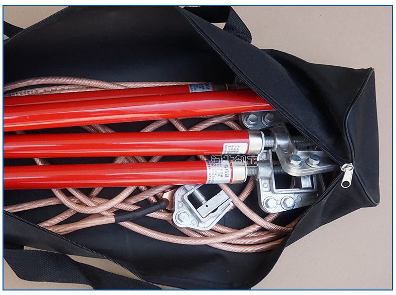(3)制作工藝: 導(dǎo)線夾、接地夾采用鋁合金或紫銅壓鑄成形;操作棒是玻璃鋼環(huán)氧樹脂管;接地軟銅線采用多股軟銅線絞合而成,外覆透明絕緣護層。