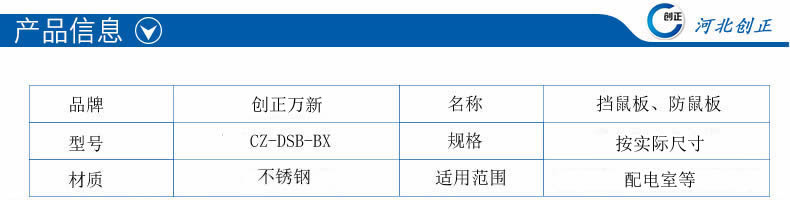 2、不銹鋼擋鼠板規格: